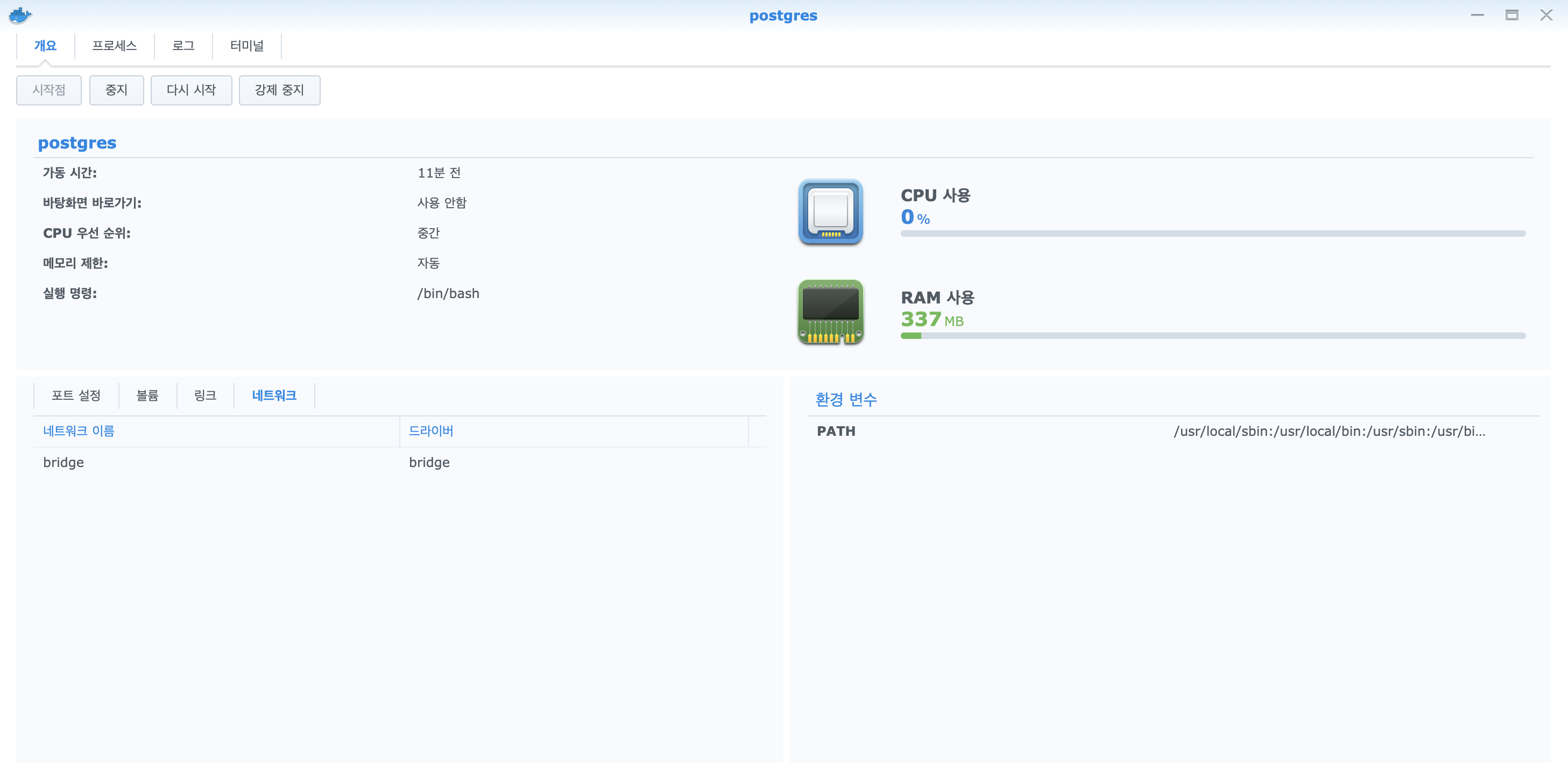 위 글과 같이 Synology NAS에 Docker 세팅을 하면서
