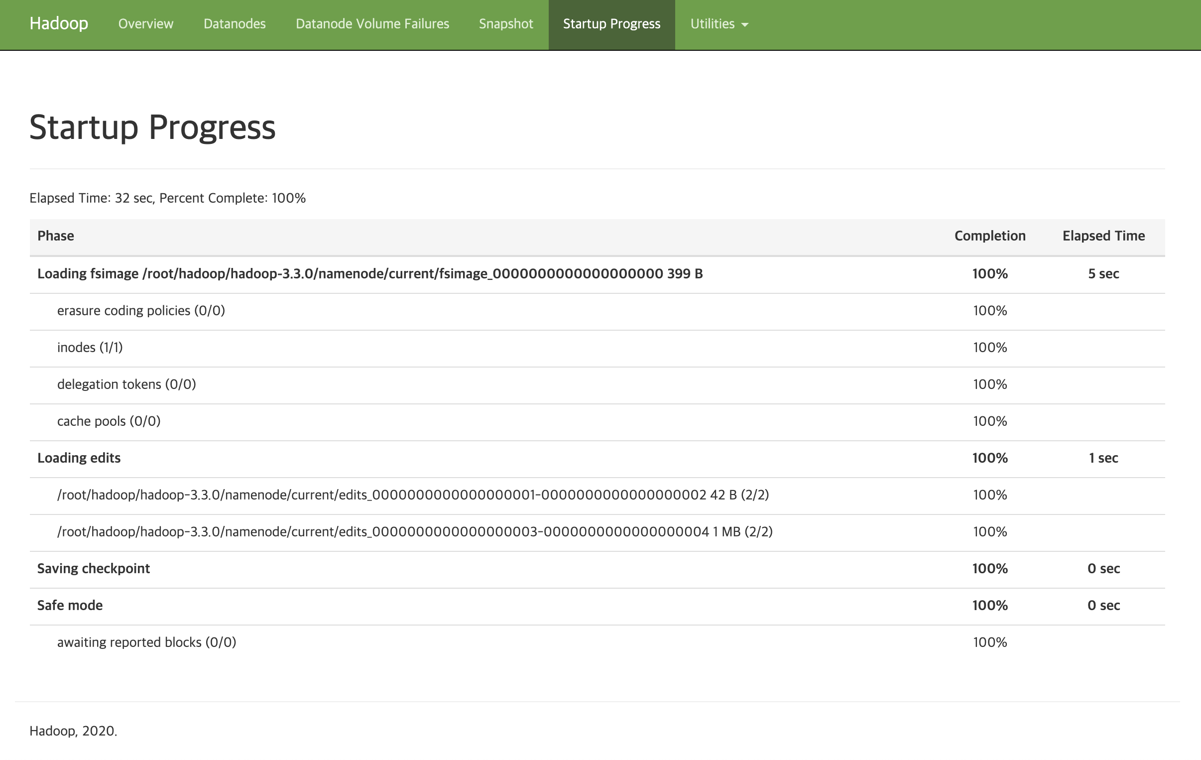 hadoop 관리자 페이지는 버전 3점대부터 기본 port가 50070 -> 9870으로 바뀌었습니다.