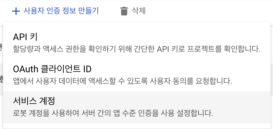 - GCP에서 프로젝트를 만들고, 서비스 계정을 생성합니다.