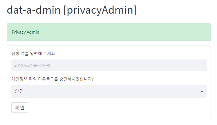 4. 개인정보 관리자가 별도의 페이지를 통해 uid를 입력하고 신청서를 승인한다.