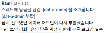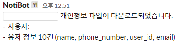 그리고 슬랙을 연동해 개인정보 관리자들이 현황을 바로 파악할 수 있게 구성했습니다.