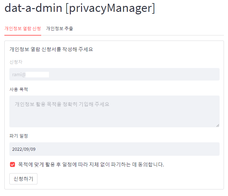 - 신청 목적, 파기 일정 입력